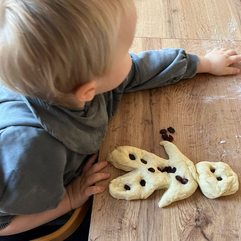 Ich koche täglich frisch mit überwiegend regionalen Bio-Zutaten. Die Kinder gestalten den Essensplan mit und dürfen beim Backen und Vorbereiten mithelfen – für gesunde Essgewohnheiten von Anfang an.